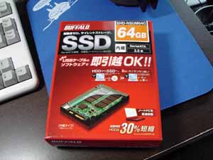 で、交換するならSSDでしょ!ということで、バッファローのSHD-NSUM64Gという64GBのSSDを購入しました。