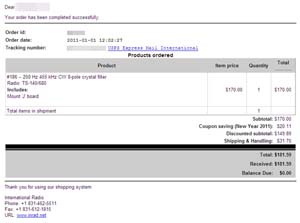 先日、INRAD(International Radio) の新年セールの話を紹介しました 。