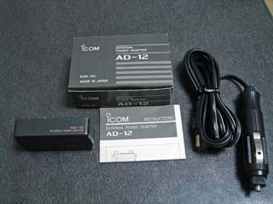購入した外部電源アダプタAD-12(とオマケのシガープラグ)。中古無線機本舗で購入。\1,600なり(送料別)。
