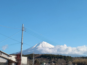 朝9時35分頃の実家からの富士山です。今日は雲が多いです。