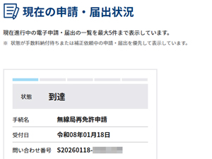 新しくなった「総務省 電波利用電子申請」だと、このような表示でした。