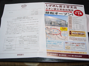 「何だろう?」と思いながら開封したところ、富士宮支店が移転するという案内でした(静岡銀行の発表[PDF]を参照)